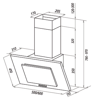 Корпус вытяжки Homsair Bell 60 выполнен из комбинации металла и закаленного стекла, что придает ей солидный вид и обеспечивает долговечность. Глянцевая черная поверхность корпуса и панели великолепно впишется в современный интерьер, от классической кухни до стиля хай-тек. Компактные размеры (97х60х31 см) и ширина встраивания 60 см позволяют ей идеально интегрироваться над стандартной варочной панелью.
