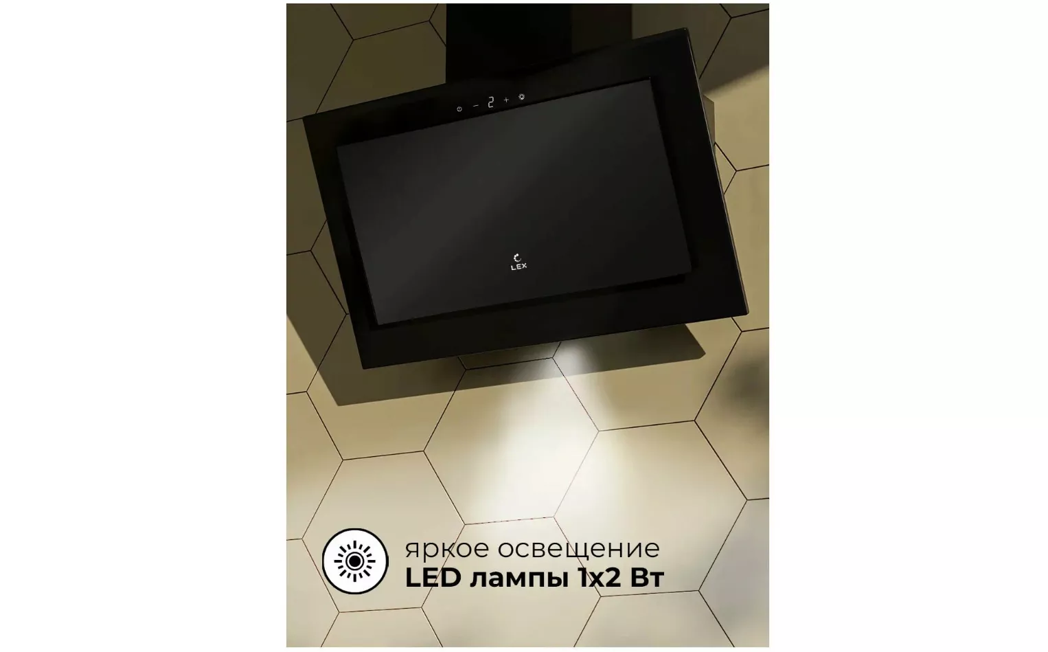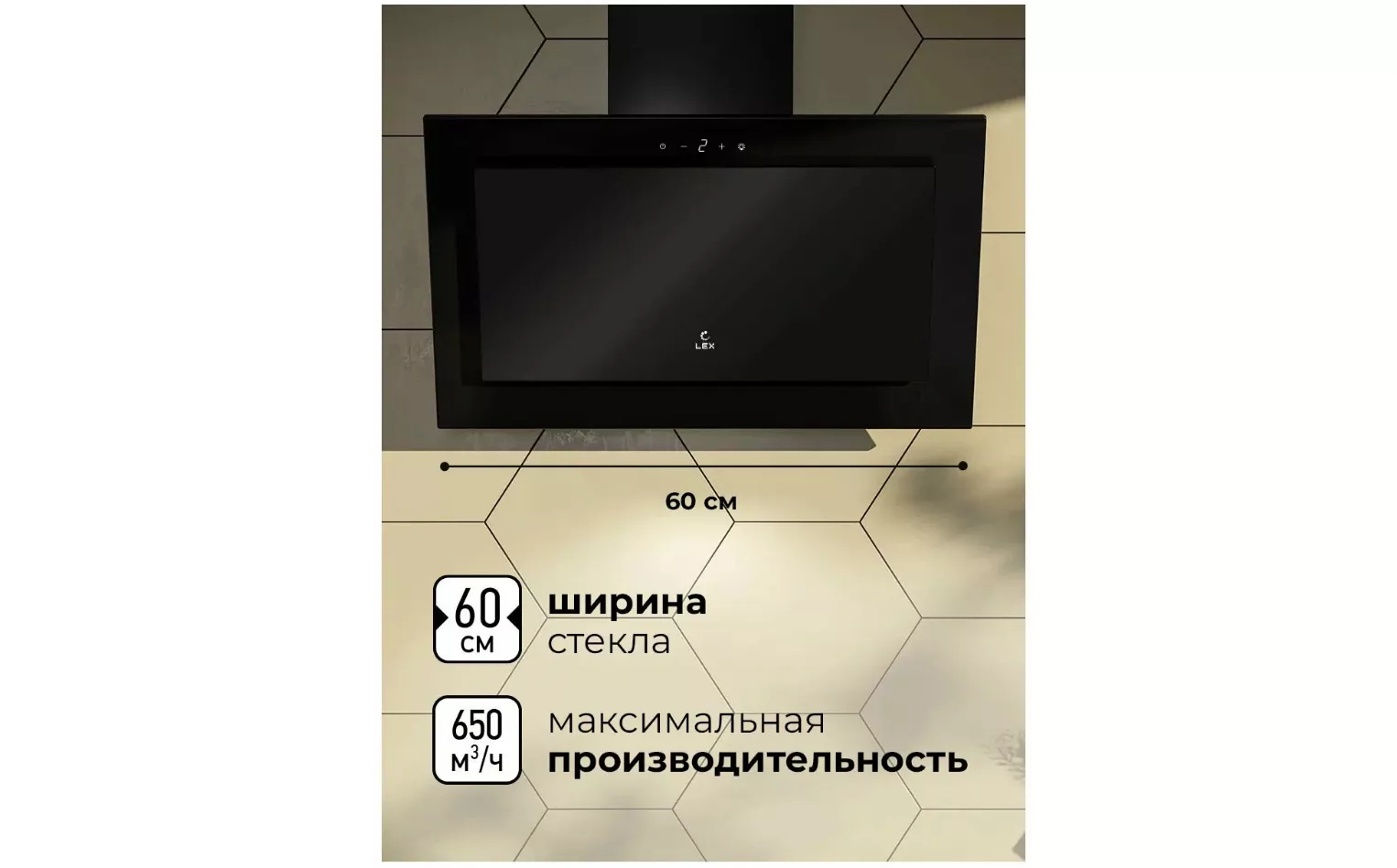 Вытяжка наклонная Lex Mio GS 600 Black — это идеальное сочетание стильного дизайна, высокой производительности и интуитивного управления. Модель шириной 60 см гармонично впишется в пространство над вашей варочной панелью, став не просто функциональным прибором, а современным элементом кухонного интерьера.